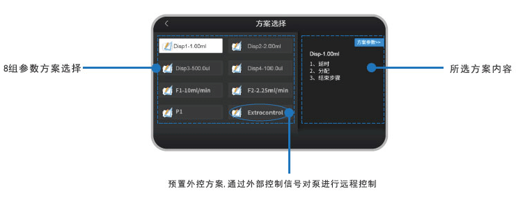 · 預(yù)置外控方案,用于通過(guò)外部信號(hào)對(duì)泵進(jìn)行操作和控制