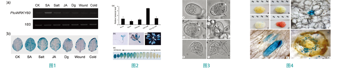 1、YE S, JIANG Y等人利用基因槍系統(tǒng)通過提高楊樹轉(zhuǎn)錄因子PtoWRKY60組成型表達(dá)提高楊樹對潰瘍病菌SACC的抗性研究結(jié)果。 【圖1、2】